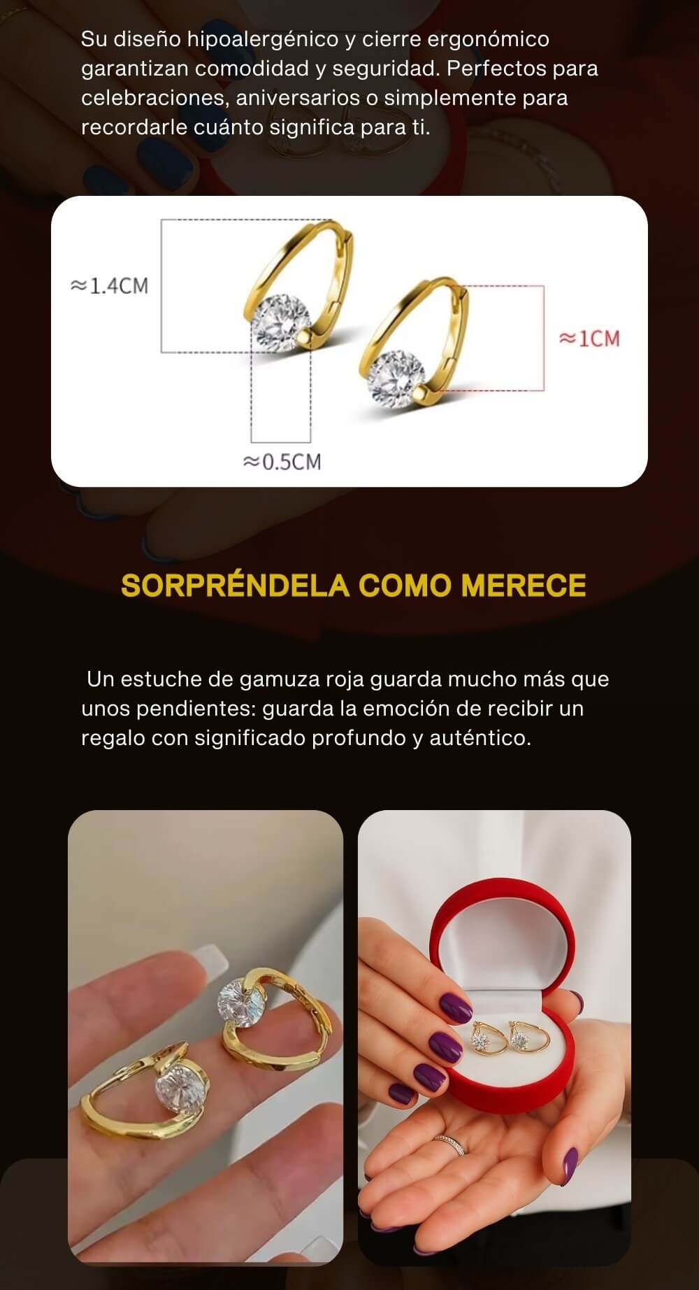 Estuche de lujo en gamuza roja: presentación sofisticada lista para regalar.
